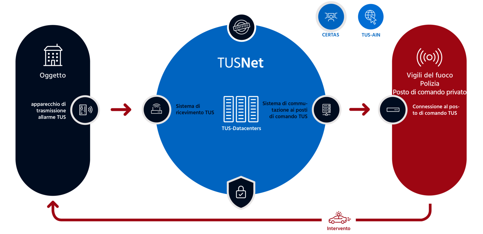 Dovete sempre poter contare sul fatto che gli allarmi arriveranno a destinazione in modo sicuro. Facciamo qualsiasi cosa per garantirlo: ci impegniamo personalmente, usiamo la tecnologia più avanzata e, in qualità di fornitore leader, vantiamo un know-how senza pari. Per poter utilizzare i nostri servizi, è necessario un abbonamento alarmNET. TUS vi dà il benvenuto!