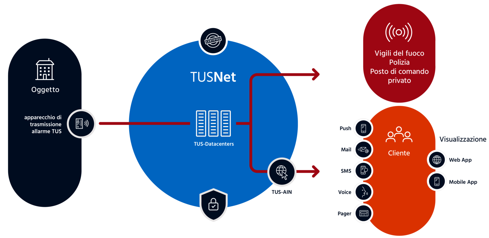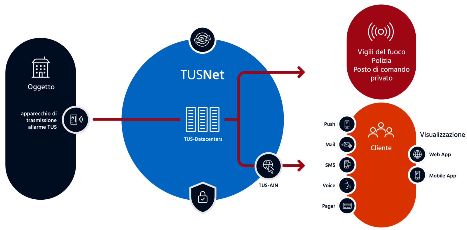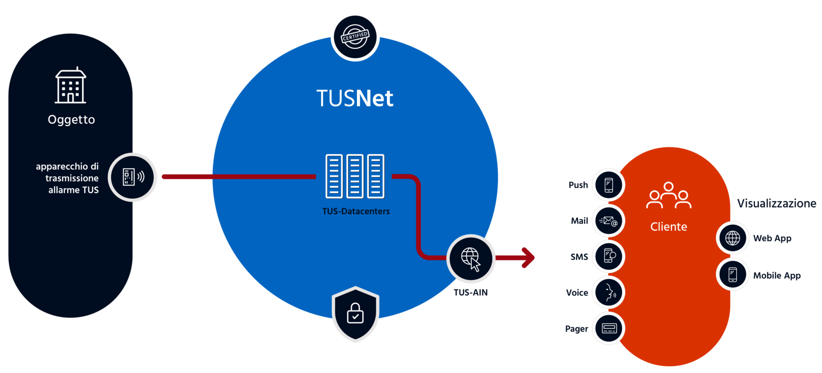 alarmPLUS invia segnalazioni di allarme e messaggi di default con i criteri selezionati. I messaggi di default comunicano il cessato allarme. La condizione di cessato allarme viene raggiunta quando un utente conferma lo stato di «allarme» cliccando sull’apposito pulsante.